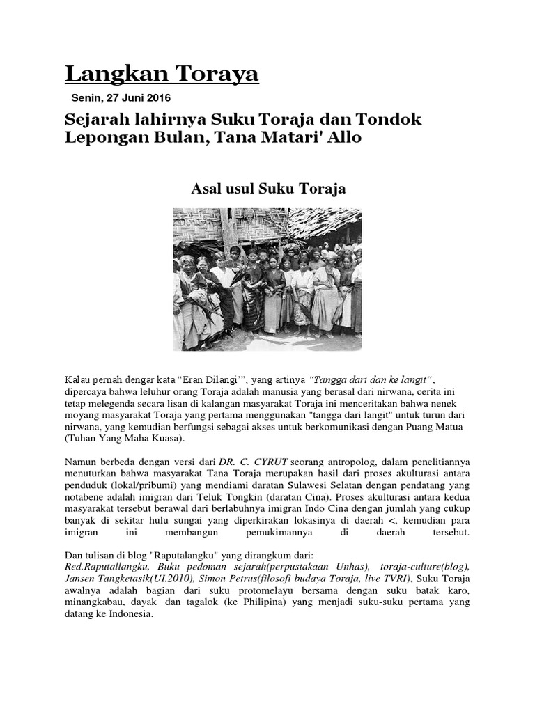 Artikel makalah kebudayaan suku toraja. Makalah kearifan lokal suku toraja. Kebudayaan suku toraja yang populer di masyarakat adalah adat pemakamannya yang bisa dibilang unik. Meskipun untuk sampai ke.