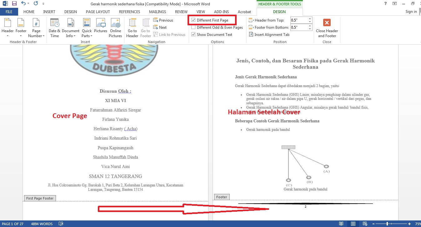 Menghilangkan page number untuk cover. 9 nomor halaman pada cover terhapus sedangkan nomor halaman pada kata pengantar masih ada kan done mudah bukan membuat nomor halaman cover tanpa ada nomor halaman. Akhirnya yang dilakukan oleh sebagian orang adalah membuat dokumen microsoft word baru hanya untuk satu halaman cover.