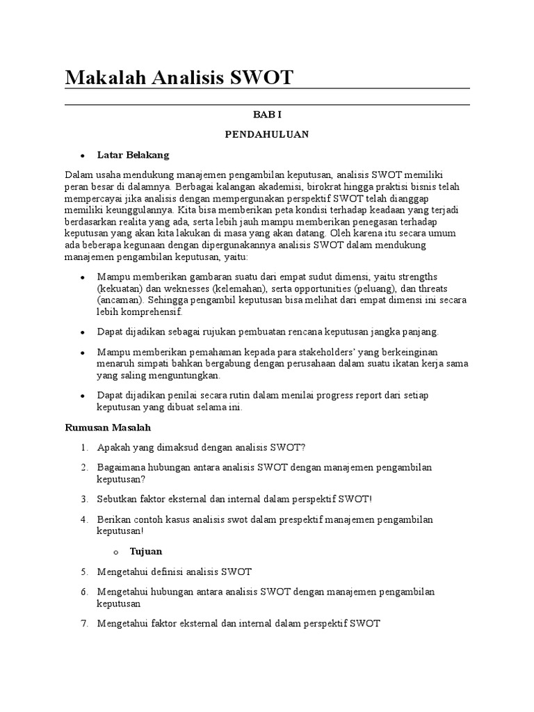 Contoh makalah analisis swot makalah.