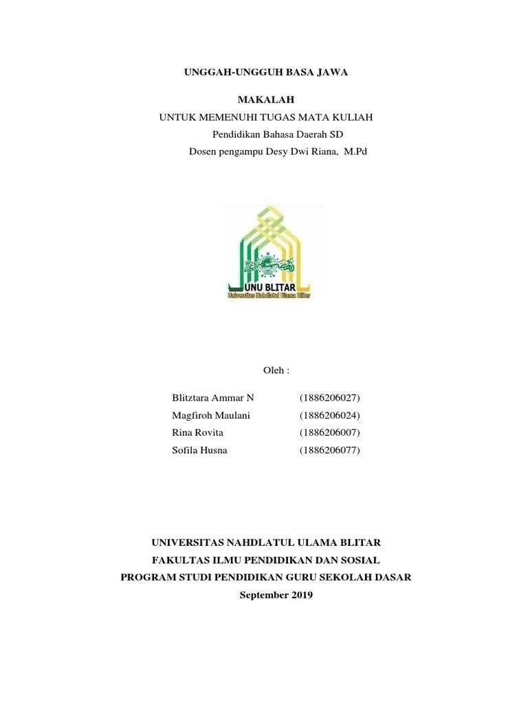 Contoh makalah bahasa jawa unggah ungguh basa. Penjelasan dan contoh main idea dan topic sentence english indo. Ngoko lugu wantah yaiku basa sing tembung tembung ing sajrone ukara mingunakake tembung ngoko kabeh tanpa kecampuran tembung krama. Pawonkidulan dalam kehidupan bermasyarakat terutama di jawa kerap terdengar istilah unggah ungguh basa makna dan arti dari unggah ungguh adalah sopan santun atau tata krama.