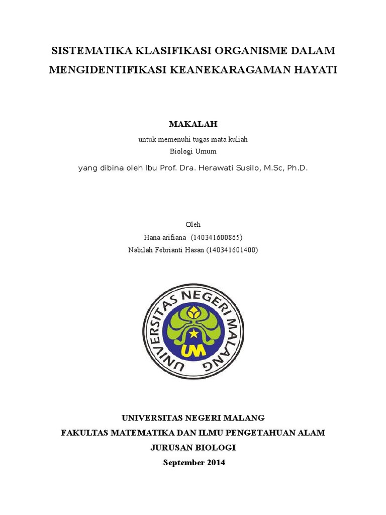 Contoh makalah klasifikasi makhluk hidup. Perkembangan klasifikasi makhluk hidup dari masa ke masa. Klasifikasi makhluk hidup adalah pengelompokan makhluk hidup berdasarkan ciri ciri tertentu yang dimilikinya. Berdasarkan lingkungan tempat hidupnya.