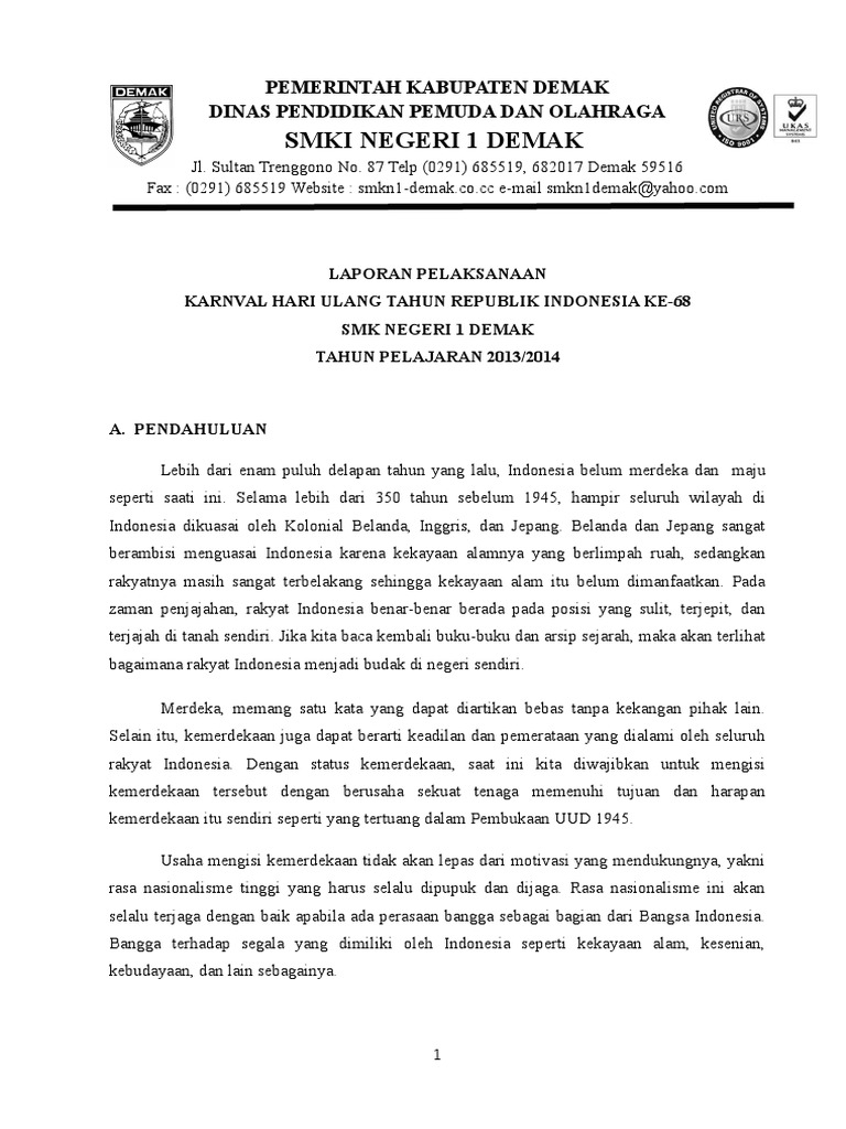 Contoh laporan kegiatan 17 agustusan singkat latar belakang tema hut ri ke 65. Jadi jangan heran jika tiap ada acara baik di tingkat sekolah rt rw desa kelurahan dan lainnya diawali dengan proposal. Jagoan ilmu contoh proposal 17 agustus di sekolah menjelang 17 agustus beberapa panitia sekolah kini sudah mulai disibukkan dengan berbagai kegiatan.