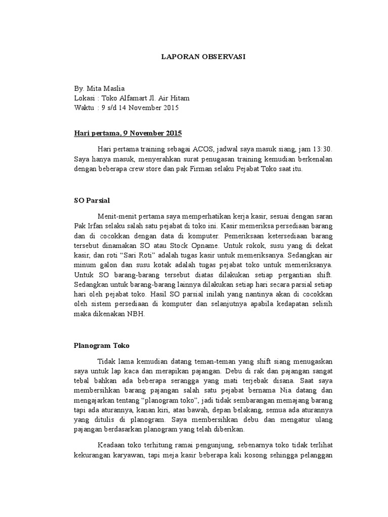 Makalah observasi di toko disusun oleh. Contoh makalah observasi alfamart. 14 13 18 toko alfamartbojong gede pt sumber alfaria trijaya tbk jl.