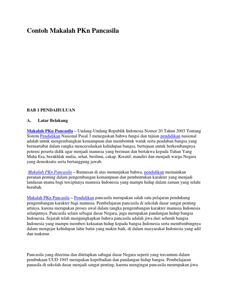 Contoh makalah pendidikan pancasila. Academia edu is a platform for academics to share research papers. Tak heran banyak pihak yang membuat dan mencari tentang makalah pancasila. Contoh makalah pancasila sebagai ideologi negara penulis unknown.