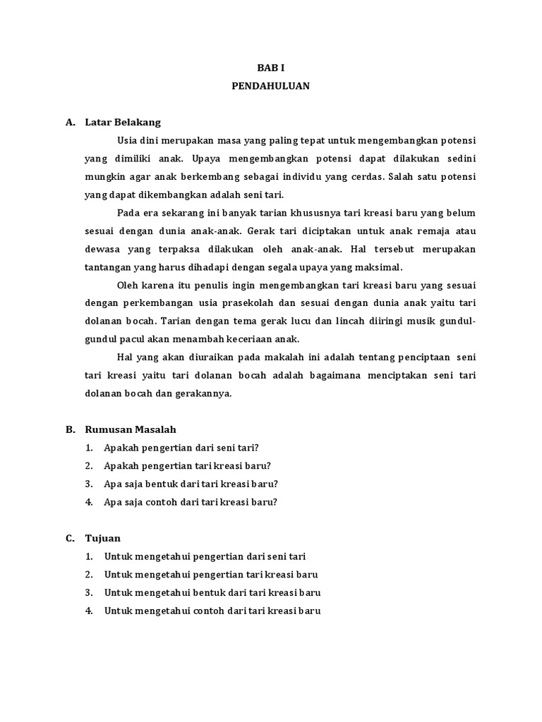 Contoh makalah seni tari kreasi. Contoh makalah seni tari kamis 17 desember 2015. Sudah jelas kalau tari kreasi berpasangan ini dilakukan dan dimainkan oleh sepasang pria dan perempuan atau dua orang. Seni tari pengertian unsur fungsi jenis peran konsep contoh para ahli.