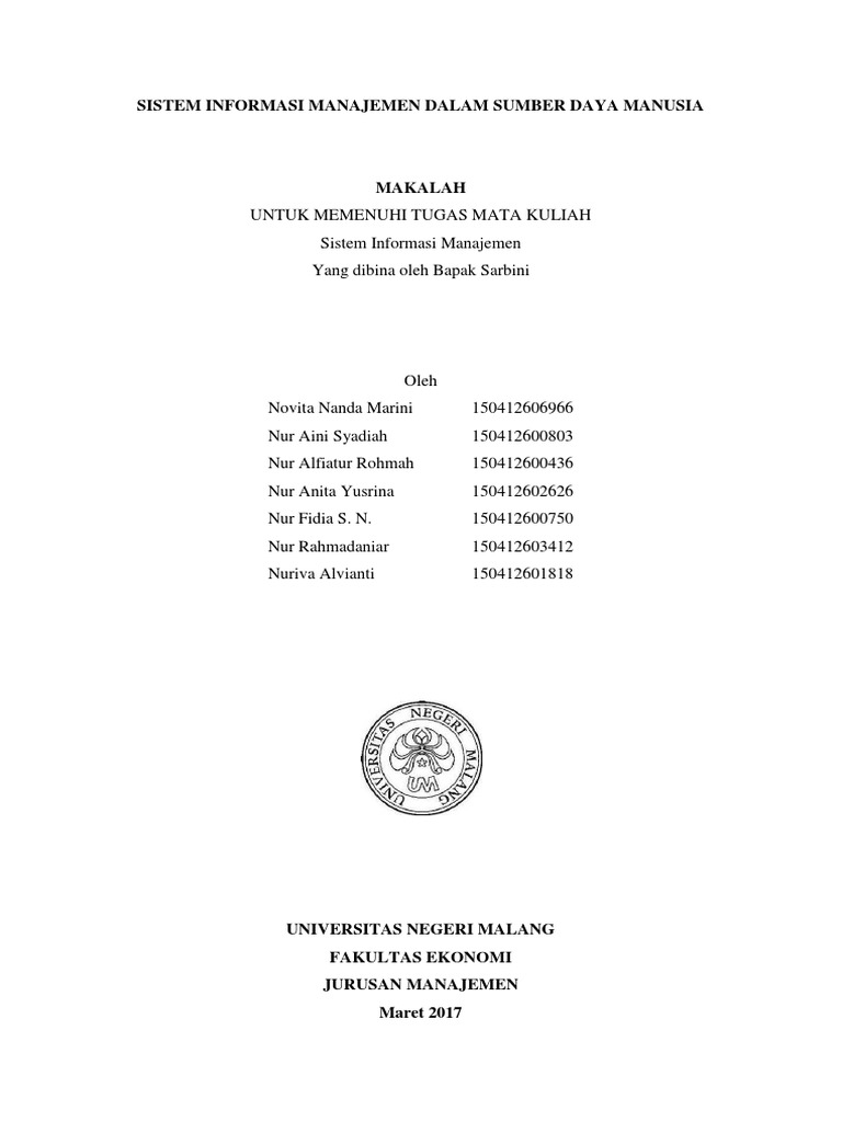 Contoh makalah sistem informasi manajemen kepegawaian. Definisi sebuah sistem informasi manajemen istilah yang umum dikenal orang adalah sebuah sistem manusia mesin yang terpadu intregeted untuk menyajikan informasi guna mendukung fungsi operasi manajemen dan pengambilan keputusan dalam sebuah organisasi. Pengertian manajemen kepegawaian menurut para ahli tujuan manfaat dan fungsi manajemen kepegawaian terlengkap manajemen kepegawaian personel management adalah proses pengolahan pegawai mulai dari perekrutan atau rekruitmen hingga phk pemutusan hubungan kerja agar pegawai memberikan kontribusi besar pada lembaga dalam mencapai tujuan individu lembaga dan masyarakat. Makalah sistem informasi manajemen.