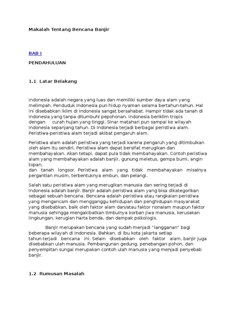 Contoh makalah tentang bencana alam banjir. Peristiwa alam yang tidak membahayakan misalnya pergantian musim terbentuknya embun dan pelangi. Penulis menyadari bahwa makalah ini tidak terlepas dari adanya perbaikan dari berbagai pihak untuk itu penulis menyampaikan terima kasih kepada dosen pembimbing yang telah memberikan masukan yang sangat bermanfaat bagi penulis. Itulah download contoh makalah geografi tentang banjir terbaru 2017 dalam file doc docx.