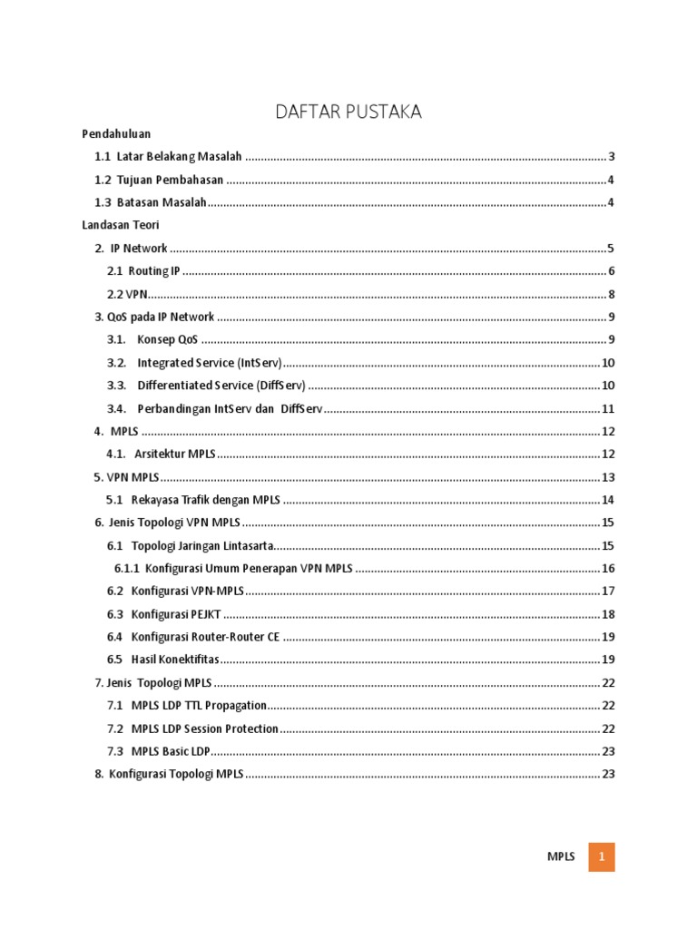 Daftar isi makalah mpls. Dan untuk melengkapi contoh daftar isi table of contents maka silahkan saksikan video tutorial cara membuat daftar isi di microsoft word berikut ini. Hal tersebut akan memudahkan pembaca untuk mencari informasi topik dan materi yang dibahas di dalam makalah. Sebagian orang memilih membuat daftar isi secara manual di microsoft word.