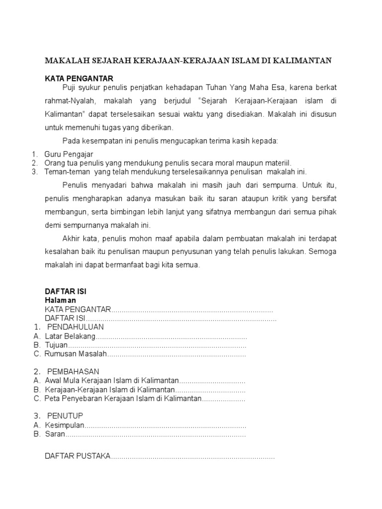 Peran sebuah daftar isi sangatlah penting dalam pembuatan makalah. Membuat daftar isi merupakan hal yang wajib dilakukan dalam menyusun sebuah karya ilmiah seperti makalah atau skripsi karena dengan adanya daftar isi dapat memudahkan pembacanya untuk mengetahui apa saja bagian bagian daripada isi dari karya ilmiah tersebut halaman demi halaman seperti letak bab bab sub bab dan hal hal penting lainnya seperti gambar tabel dan grafik. Berikut contoh daftar isi makalah anda pasti pernah mendengar istilah daftar isi.