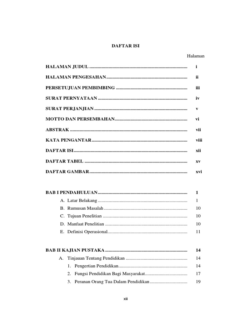 Pastinya di makalah buku atau skripsi. Contoh daftar isi skripsi makalah laporan yang baik dan benar jika kalian akan membuat karya ilmiah seperti skripsi makalah atau proposal pasti memerlukan penyusunan yang terperinci. Kamu cukup susun bab sub bab dan penomeran halaman sesuai dengan letak halaman asli yang ada di skripsi laporan atau proposal.