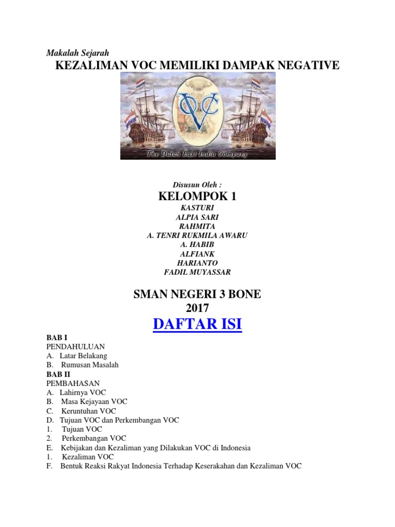Makalah ini di susun oleh penyusun dengan berbagai rintangan. Makalah kekuasaan voc di indonesia. Makalah sejarah voc jika dalam postingan ini anda kurang mengerti atau susunanya tidak teratur anda dapat mendownload versi doc makalah berikut.