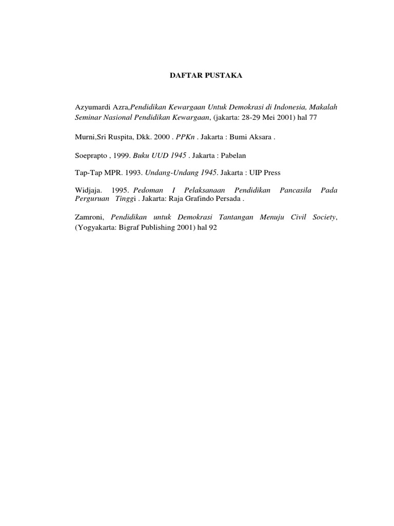 Daftar pustaka makalah pkn. Contoh daftar pustaka ini diambil dari tugas akhir kuliah saya waktu menempuh pendidikan diploma di amik jtc semarang pada tahun kemarin 2009. Nilai sosiologis adalah. Dimuat dalam fkunand 2010.