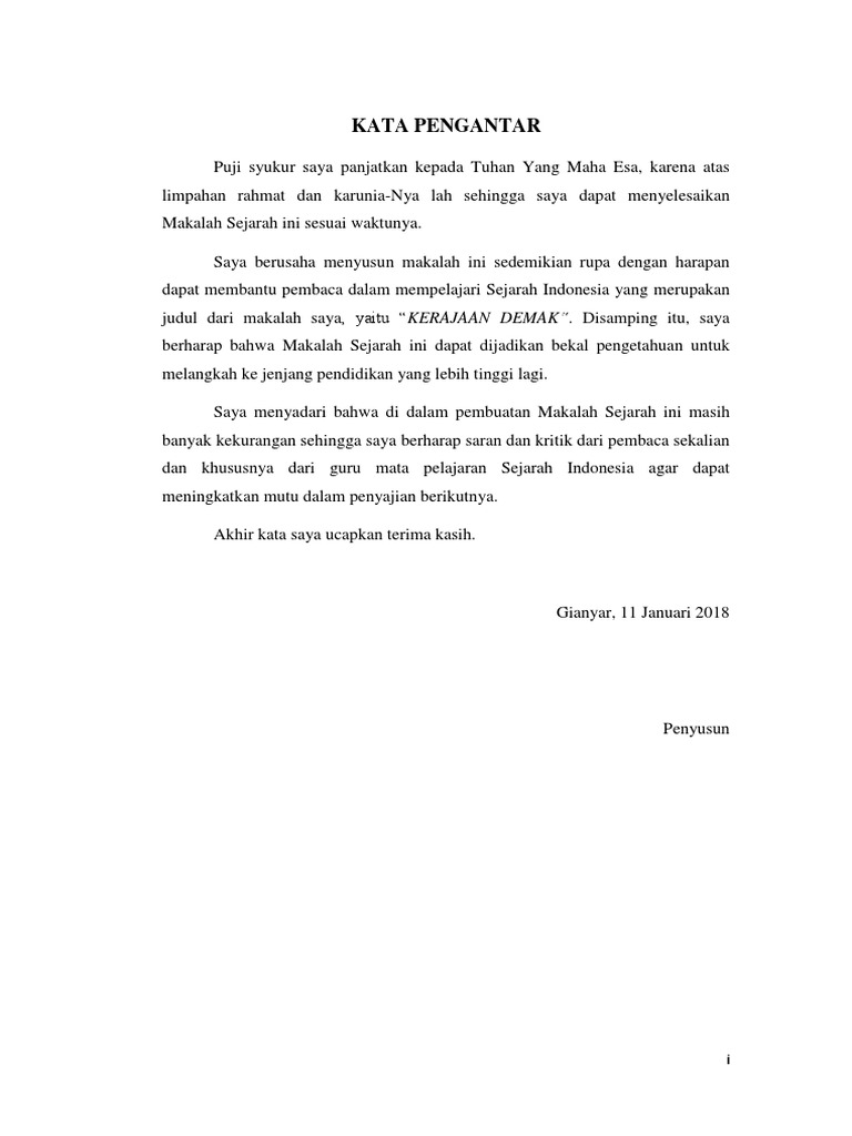 Kata pengantar dalam makalah sejarah. Dalam sebuah karya tulis yang berbentuk buku entah itu buku novel biografi buku pelajaran pasti selalu memiliki kata pengantar di dalamnya. Kepada nya kita memuji dan bersyukur memohon pertolong. Biasanya kata pengantar selalu diletakan pada bagian awal makalah.