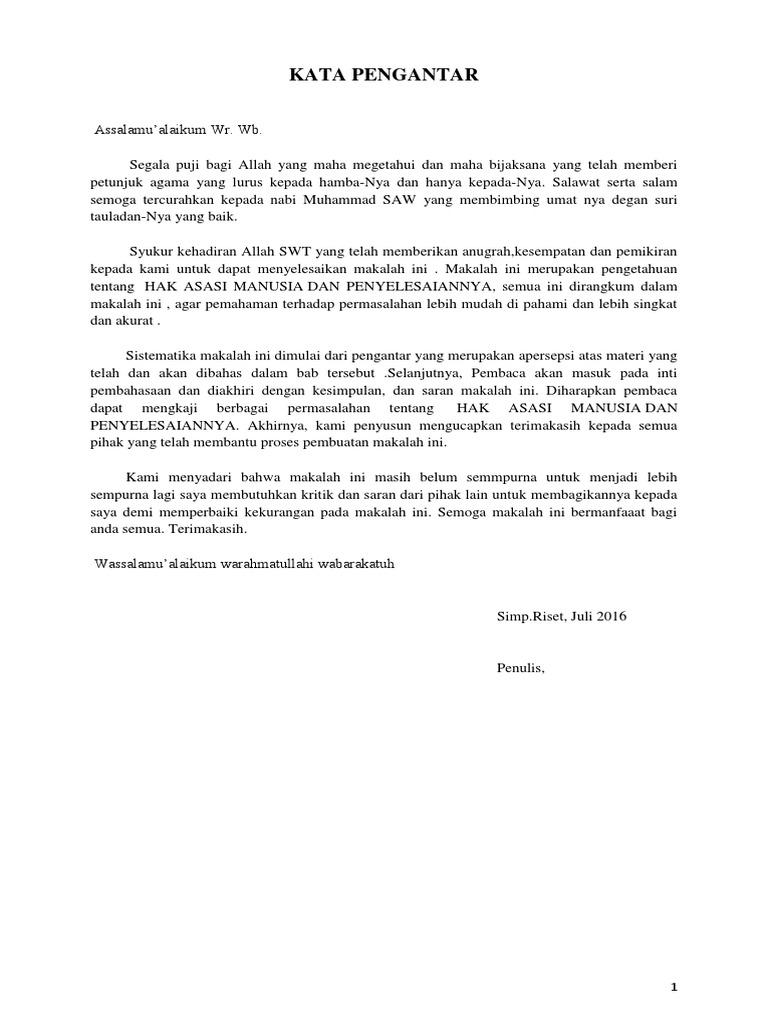 Contoh kata pengantar makalah. Sama seperti halnya keadilan hak asasi manusia merupakan bahasa universal bagi bangsa manusia dan menjadi kebutuhan pokok rokhaniah bagi bangsa baradab di muka bumi. Banyak masalah yang berkaitan dengan pelanggaran ham yang saat ini sedang gencar diperbincangkan di media sosial.