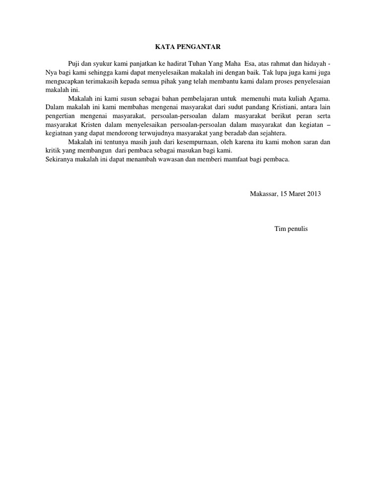Kata pengantar makalah kristen. Pertama tama kami mengucapkan puji syukur kehadirat tuhan yang maha esa karena berkat rahmat dan hidayahnya penulis dapat menyelesaikan makalah ini tepat pada waktunya. Contoh kata pengantar makalah. Kata pengantar makalah agama kristen.