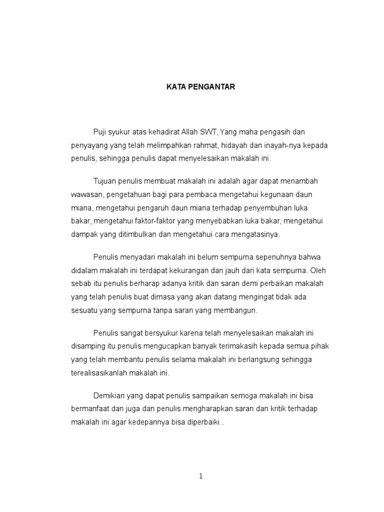 Kata pengantar makalah luka bakar. Misalnya untuk kata pengantar singkat sederhana sampai yang lengkap. Segala puji hanya layak untuk allah tuhan seru sekalian alam atas segala berkat rahmat taufik serta hidayah nya yang tiada terkira besarnya sehingga penulis dapat menyelesaikan makalah dengan judul luka bakar. Bab i pendahuluan 1 1 latar belakang luka bakar merupakan cedera yang cukup sering dihadapi oleh dokter jenis yang.