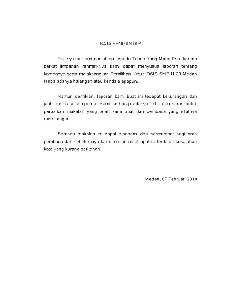 Kata pengantar makalah osis. Contoh kata pengantar makalah sejarah. Kata pengantar makalah osis bismillahirahmanirahim assalamu alaikum wr wb puji syukur kita p. Meskipun ada banyak referensi makalah di internet tetapi kamu tidak bisa asal asalan ketika membuat makalah tersebut.