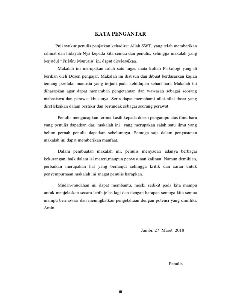Kata pengantar makalah psikologi. Buku skripsi thesis disertasi makalah atau laporan formal ilmiah harus menggunakan kata pengantar. Kata pengantar puji syukur penulis panjatkan kehadirat tuhan yang maha esa karena atas berkat rahmat dan hidayah nya sehingga penulis dapat menyelesaikan makalah ini yang membahas mengenai psikologi pendidikan. Sesuai dengan namanya kata pengantar adalah ucapan rasa syukur dan terima kasih serta sambutan dari penulis terhadap karya tulis yang telah dibuat olehnya.