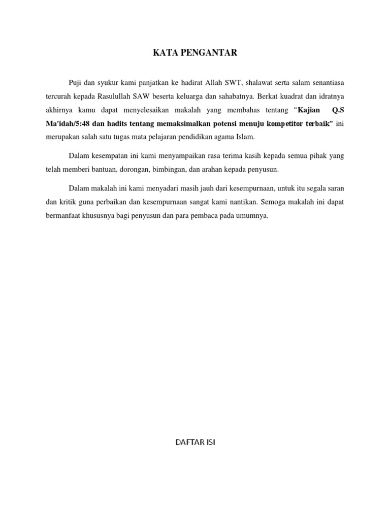 Kata pengantar makalah quran hadits. Makalah ulumul hadits makalah ulumul hadits disusun oleh. Makalah al qur an dan hadis sebagai pedoman hidupku kata pengantar salah satu misi utama innama nabi muhammad saw diutus adalah untuk menyempurnakan keluhuran akhlak. Dan tak lupa kami bersyukur atas tersusunnya makalah kami yang berjudul sumber hukum hukum islam al qur an.