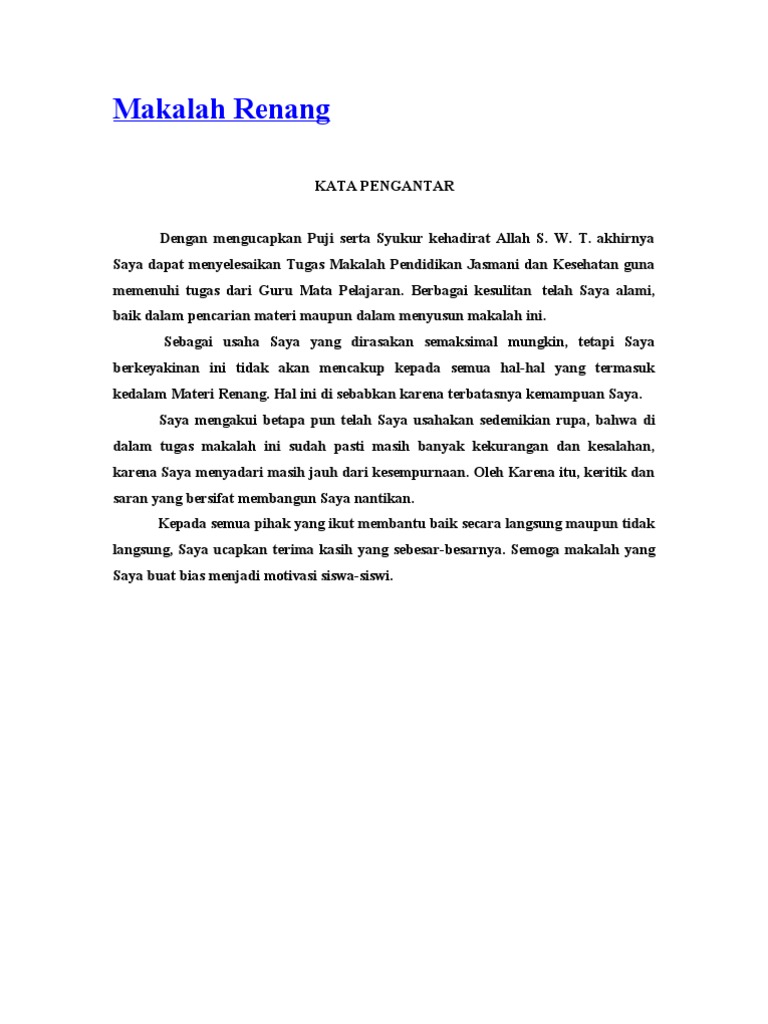 Misalnya untuk kata pengantar singkat sederhana sampai yang lengkap. Makalah makalah makalah renang makalah renang bimo seno 13 00. Akhirnya saya dapat menyelesaikan tugas makalah pendidikan jasmani dan kesehatan guna memenuhi tugas dari guru mata pelajaran.