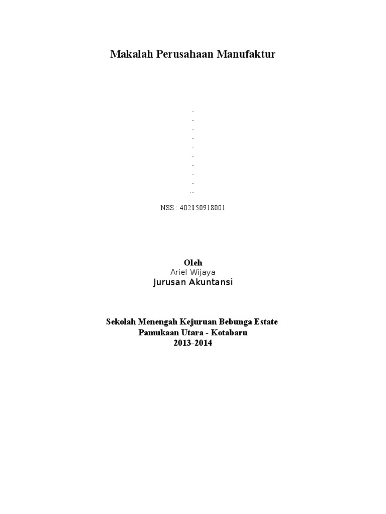 Makalah akuntansi perusahaan manufaktur. Kelebihan yang di miliki perusahaan ini adalah bisa menyerap banyak tenaga kerja karena merupakan industri padat karya dalam melakukan proses produksinya perusahaan ini mengolah serat kayu kapas dan bulu binatang terutama domba yang di olah menjadi benang kemudian dari benang lagi di olah. Makalah akuntansi perusahaan manufaktur. Makalah akuntansi perusahaan manufaktur beserta perhitungannya bab i.