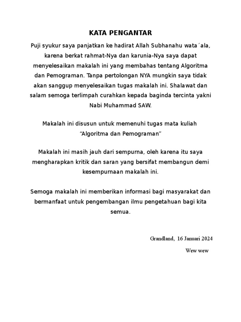 Makalah algoritma dan pemrograman. Sistem informasi yayasan airlangga borneo internasional dinas pendidikan kota samarinda tahun ajaran 2013 2014 i kata pengantar assalamualaikum wr. Puji syukur saya panjatkan ke hadirat allah subhanahu wata ala karena berkat rahmat nya dan karunia nya saya dapat menyelesaikan makalah ini yang membahas tentang algoritma dan pemograman. Wb puji syukur atas kehadirat allah swt yang telah melimpahkan rahmat dan nikmatnya kepada kami sehingga kami bisa menyelasaikan makalah.