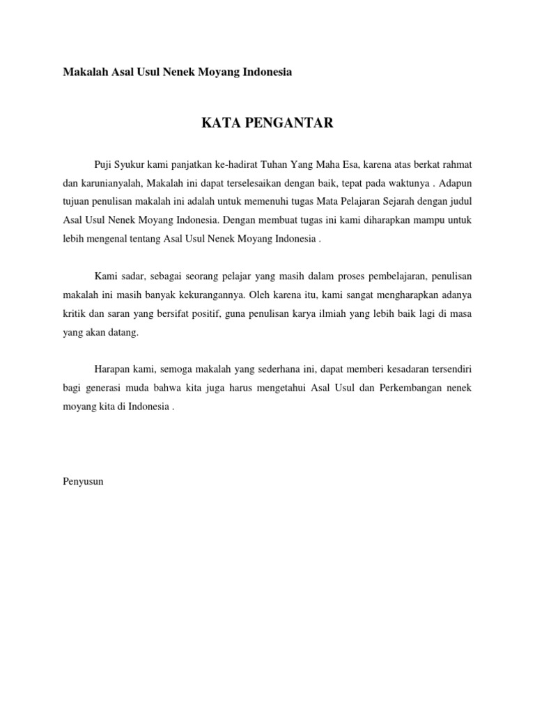 Makalah asal usul nenek moyang bangsa indonesia. Spd ma muhammadiyah 09 lamongan latar belakang sejarah merupakan bagian yang tidak terpisahkan dari kehidupan manusia dan menjadi suatu rangkaian yang erat sepanjang kehidupan manusia. Rumpun austronesia ini digunakan oleh leluhur bangsa indonesia yang menetap di pulau formosa. Adapun tujuan penulisan makalah ini adalah untuk memenuhi tugas mata pelajaran ips sejarah dengan judul asal usul nenek moyang indonesia.