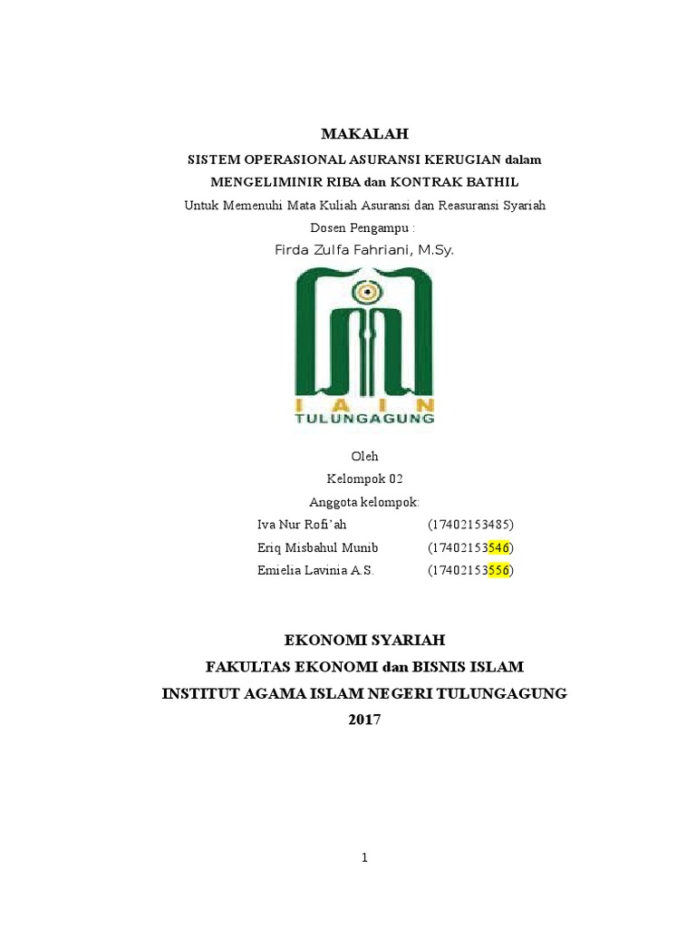 Makalah asuransi dalam islam. Dalam islam asuransi haruslah bertujuan kepada konsep tolong menolong dalam kebaikan dan ketakwaan. Segala puji bagi allah swt robbil alamin puji dan syukur bagi nya yang telah melengkapi dan mencukupkan nikmatnya dan sholawat semoga tetap terlimpah atas junjungan kita nabi muhammad saw yang telah di utus allah swt. Mengenai asuransi pada umumnya dalam syari at islam dikategorikan ke dalam masalah masalah ijtihad sebab tidak ada ditemukan penjelasan resmi baik dalam al qur an maupun al hadis di samping itu para imam mazhab juga tidak ada memberikan pendapatnya tentang ini sebab ketika itu masalah peransurasian belum dikenal.