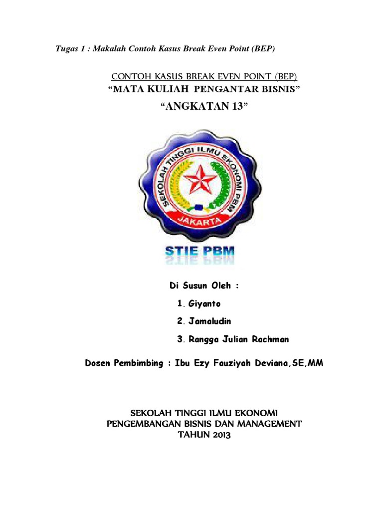 Bep merupakan singkatan dari break even point. Makalah analisis break even point. Break even dapat diartikan suatu keadaan dimana dalam operasi perusahaan perusahaan tidak memperoleh laba dan tidak menderita rugi penghasilan total biaya.