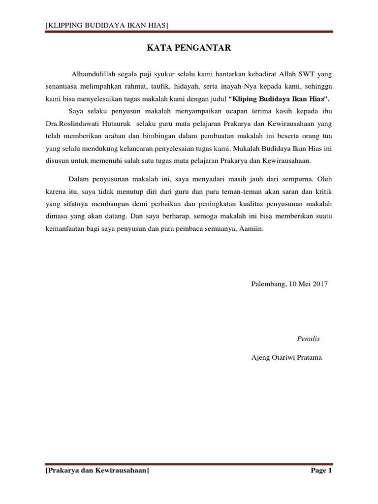 Penulis menyadari bahwa dalam penulisan makalah ini masih jauh dari sempurna karena masih banyak kekurangan dan kesalahan. Salah satunya adalah ikan koi. Salah satunya adalah ikan koi cyprinus carpio merupakan salah satu ikan hias potensial yang dibudidayakan di indonesia.