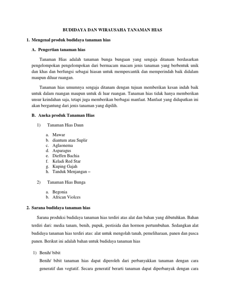Budidaya tanaman saat ini banyak macamnya salah satunya adalah budidaya tanaman hias. Makalah budidaya tanaman hias. Orang tidak akan sayang membelanjakan puluhan bahkan ratusan juta rupiah hanya untuk memenuhi hobi mereka.