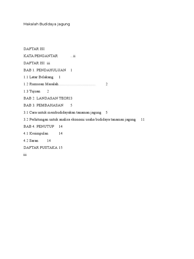 Usaha bidang pertanian dengan budidaya tanaman jagung sangat menguntungkan dilihat dari analisis ekonominya tetapi dalam usaha perlu adanya perencanaan yang matang agar tidak terjadi kesalahan dalam biaya maupun budidaya tanamannya. Makalah pertanian budidaya jagung. Tanaman jagung juga termasuk tanaman monokotil yang berarti tidak memiliki kayu pada bagia batangnya dan termasuk dalam famili rumput rumputan.