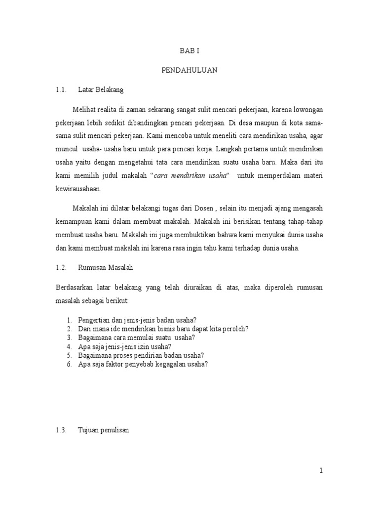 Kami juga berharap agar makalah ini bisa bermanfaat bagi anda semua yang telah membacanya serta dapat menerapkan hal positif yang terkandung dalam makalah ini. Makalah cara mendirikan usaha. 1 3 rumusan masalah berdasarkan latar belakang yang telah diuraikan di atas maka diperoleh rumusan masalah sebagai berikut.