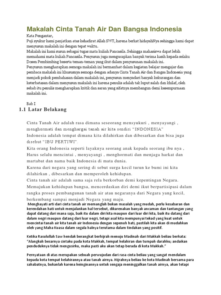 Contoh makalah cinta tanah air dan bangsa.