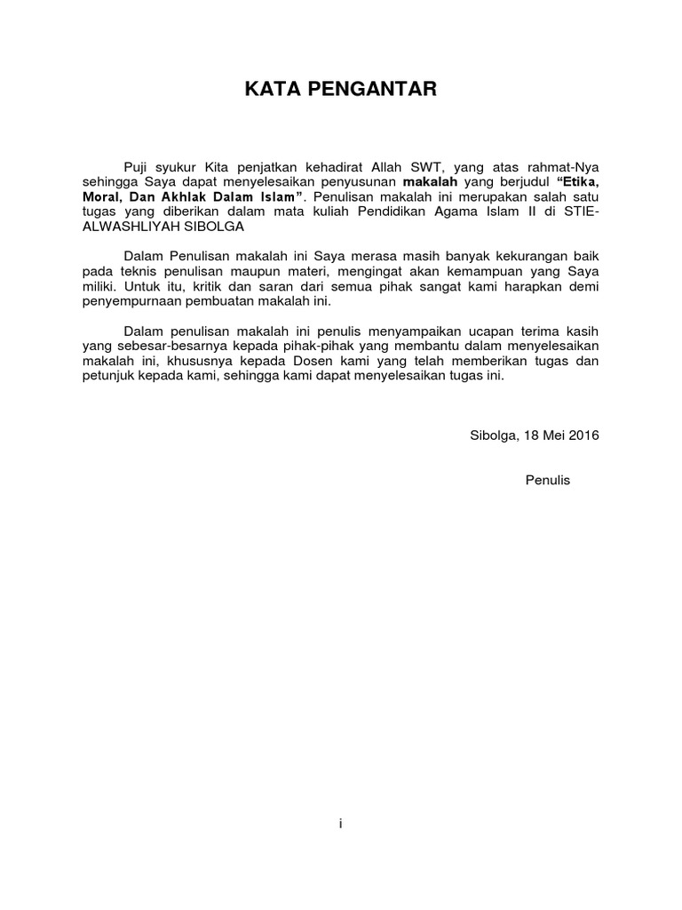 Kata pengantar puji syukur kami panjatkan kepada allah swt. Basdiati 1443040001 alim ikhsan 1443041001 administrasi pendidikan fakultas ilmu pendidikan universitas negeri makassar 2014 kata pengantar alhamdulillah puji syukur kita panjatkan atas kehadirat allah swt. Moral islam adalah tingkah laku seseorang yang muncul secara otomatis berdasarkan kepatuhan dan kepasrahan pada pesan ketentuan allah swt.