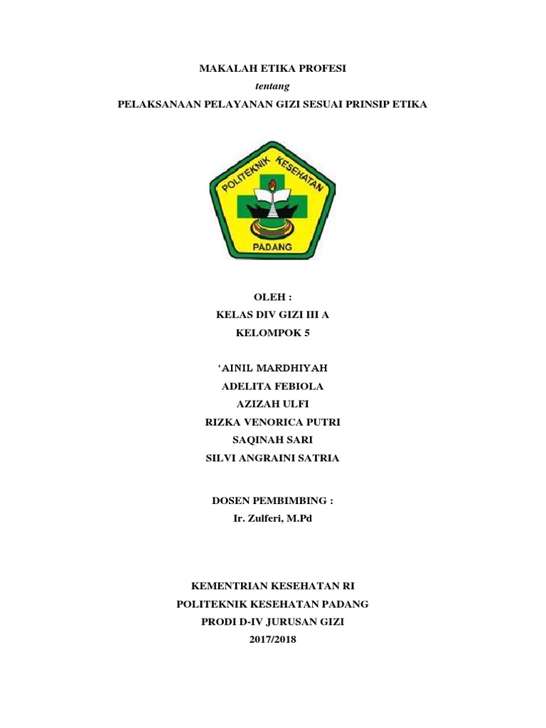Latar belakang derasnya arus globalisasi yang semakin mempengaruhi kehidupan sosial masyarakat dunia juga mempengaruhi munculnya masalah penyimpangan etik sebagai akibat kemajuan teknologi ilmu pengetahuan yang menimbulkan konflik terhadap nilai. Makalah etika profesi analis kesehatan ekasf 2015 05 28t00 59 00 07 00 5 0 stars based on 35 reviews bab i pendauluan a. Etika kesehatan masyarakat sangat berbeda dengan etika kedokteran yang menyatakan bahwa dalam menjalankan pekerjaan kedokteran seorang dokter janganlah dipengaruhi oleh pertimbangan pertimbangan pribadi seorang dokter harus senantiasa mengingat kewajiban melindungi hidup makhluk insani seorang dokter memperlakukan teman sejawatnya sebagaimana ia sendiri ingin diperlakukan seorang dokter.
