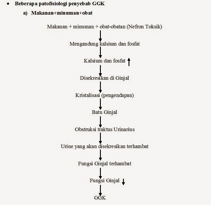 Gagal ginjal kronik ditandai dengan gejala dan tanda uremia yang berkepanjangan adalah hasil akhir semua penyakit ginjal kronik robbins 2007 572. Gagal ginjal kronik merupakan kegagalan fungsi ginjal unit nefron yang berlangsung perlahan lahan karena penyebab berlangsung lama dan menetap yang mengakibatkan penumpukan sisa metabolit toksin uremik sehingga ginjal tidak dapat memenuhi kebutuhan biasa lagi dan menimbulkan gejala sakit hudak gallo 1996. Dimana kemampuan tubuh gagal untuk mempertahankan metabolisme dan keseimbangan cairan dan elektrolit menyebabkan uremia retensi urea dan sampah nitrogen lain dalam darah kmb vol 2 hal 1448.