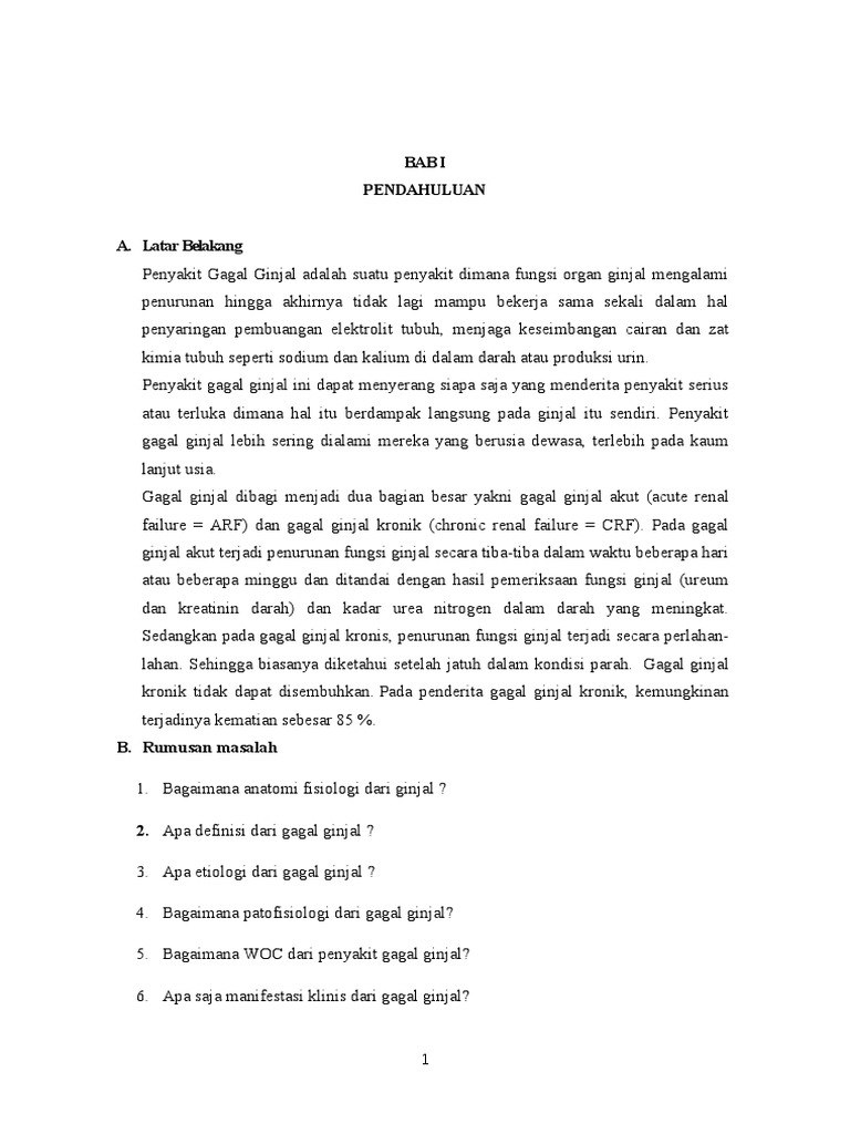 Bab i pendahuluan a. Home makalah gagal ginjal kronis. Makalah gagal ginjal kronik 1.