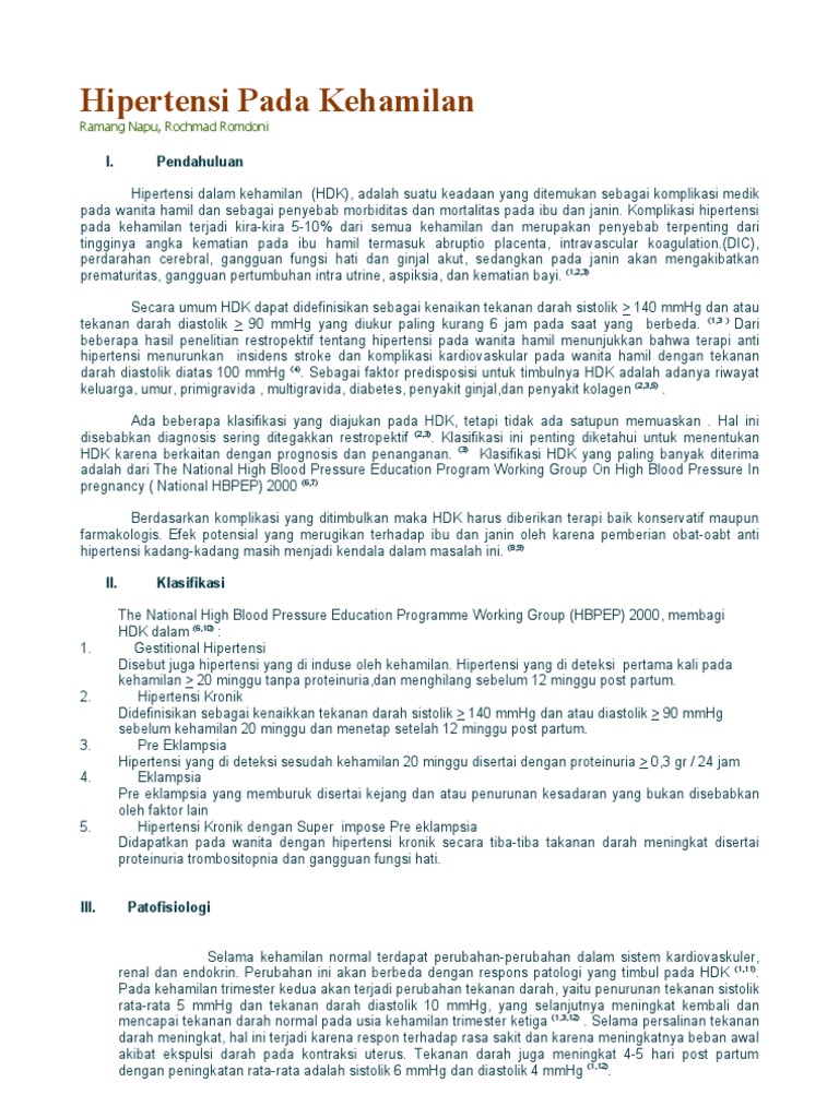 Makalah hipertensi dalam kehamilan doc. Hipertensi dengan tekanan darah 140 90 mmhg sebelum hamil atau sebelum usia kehamilan 20 minggu termasuk dalam kualifikasi hipertensi kronis. Academia edu is a platform for academics to share research papers. 1 indonesia sebagai salah satu negara berkembang juga menghadapi masalah ini.