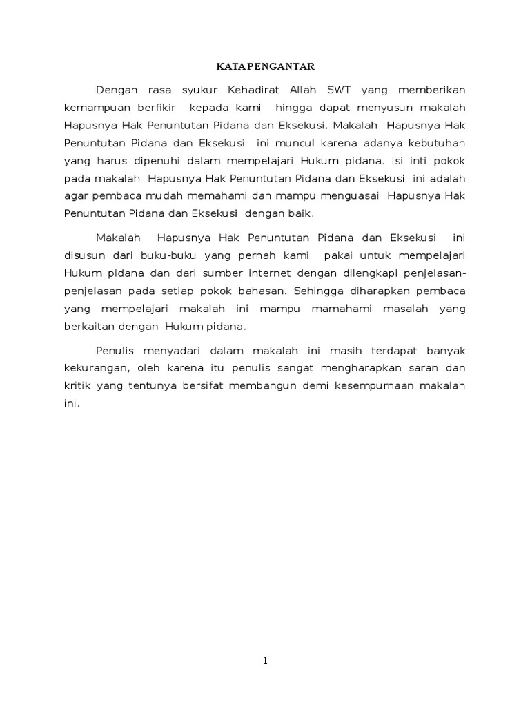 Makalah hukum acara pidana tentang penuntutan. Tindak pidana dirumuskan didalam pasal pasal. Dalam hal penuntutan menurut undang undang no. 8 tahun 1981 tentang kitab hukum acara pidana kuhap ialah tindakan penuntut umum pu untuk melimpahkan perkara pidana ke pengadilan negeri pn yang berwenang dalam hal dan menurut cara yang diatur dalam uu dengan permintaan supaya diperiksa dan diputus oleh hakim dalam persidangan.