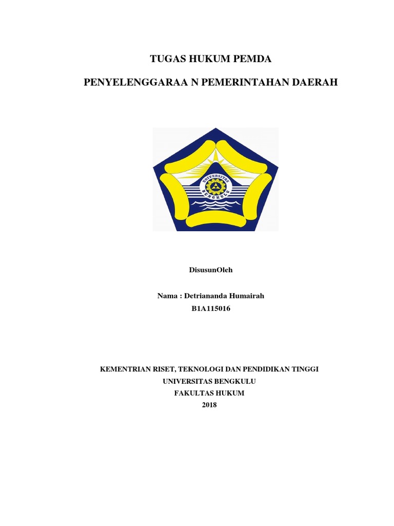 Nurjaya fakultas hukum jurusan ilmu hukum universitas tomakaka mamuju sulawesi barat tahun akademik 2012 2013 kata pengantar assalamualaikum wr wb salam mahasiswa. Dasar pemikirannya adalah penyelenggaraan pemerintahan daerah disesuaikan dengan amanat undang undang dasar negara republik indonesia tahun 1945 yaitu pemerintahan daerah yang mengatur dan mengurus sendiri urusan pemerintahan menurut asas otonomi dan tugas pembantuan diarahkan untuk mempercepat terwujudnya kesejahteraan masyarakat melalui. Makalah wewenang pemerintah daerah 1.