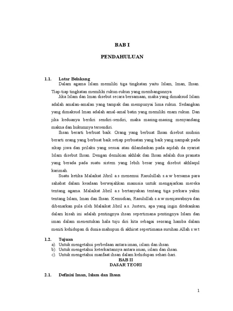Makalah iman islam dan ihsan. Iman islam dan ihsan merupakan tiga rangkaian konsep agama islam yang sesuai dengan dalil iman islam dan ihsan saling berhubungan karena seseorang yang hanya menganut islam sebagai agama belumlah cukup tanpa dibarengi dengan iman. Jadi manusia yang bertaqwa harus bisa meraih dan menyeimbangkan antara iman islam dan ihsan. Segitiga tersebut tidak akan terbentuk kalau ketiga sisinya tidak saling mengait.