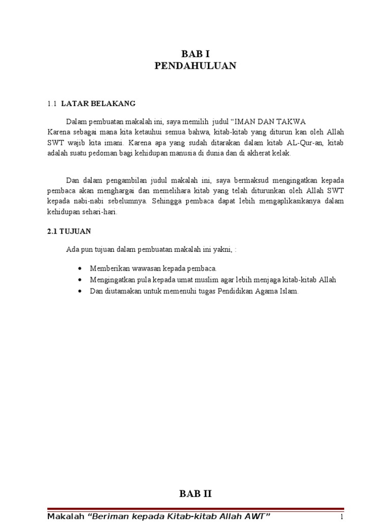 Makalah iman kepada kitab allah pdf. Dilihat dari pengertian atau arti defenisi kitab allah swt adalah kitab suci yang merupakan wahyu yang diturunkan oleh allah swt melalui rasul rasulnya untuk dijadikan pedoman hidup umat manusia sepanjang masa. Puji dan syukur penyusun panjatkan kehadirat allah swt yang telah memberikan rahmat dan hidayah nya kepada penulis sehingga makalah yang berjudul iman kepada kitab kitab allah swt dapat tersusun dengan baik dan dapat disajikan dengan baik. Oleh karena itu isi kitab tersebut hanya sesuai untuk zamanya dan isi kitabullah yang satu berbeda dengan yang lain.
