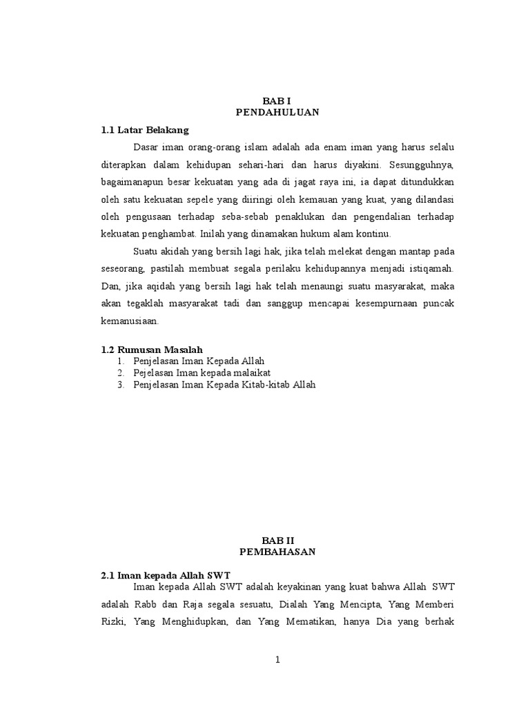 Oleh karena itu di dalam pembahasan makalah ini penulis hanya akan membahas masalah iman kepada kitab kitab allah swt. Makalah beriman kepada rasul allah. Maka dari itu kita harus wajib berpedoman kepada kitab kitab yang diturunkan oleh allah swt kepada nabi dan rasul nya supaya untuk mendapatakan kebahagiaan di dunia maupun diakhirat.