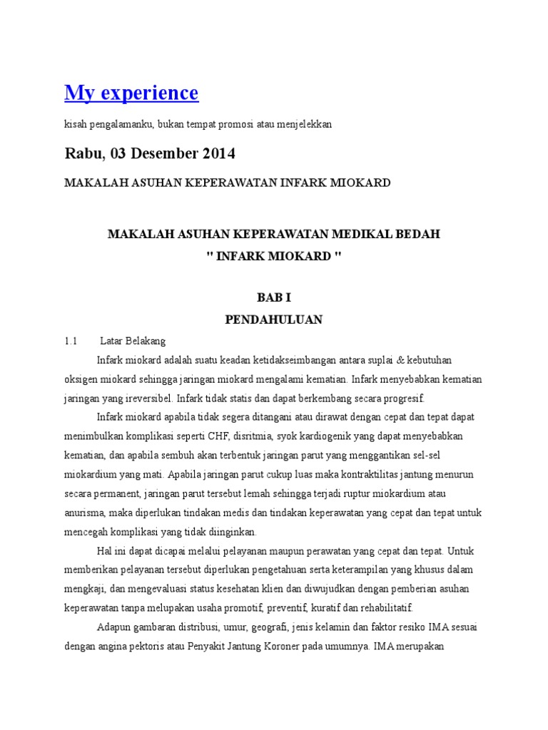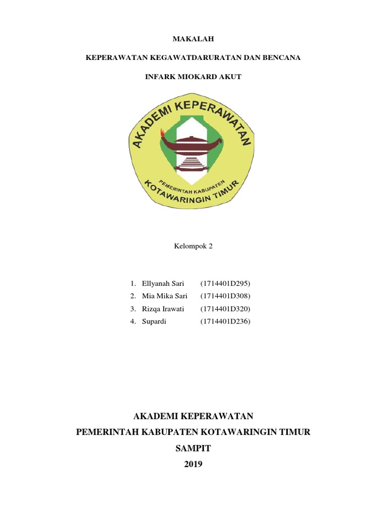 Makalah infark miokard akut. Academia edu is a platform for academics to share research papers. Makalah ini ditulis dengan bahasa yang sederhana singkat serta mudah dicerna isinya oleh pembaca penulis menyadari bahwa makalah ini jauh dari sempurna masih terdapat kekurangan dan kekeliruan maka penulis senantiasa menerima kritik dan saran yang sifatnya membangun dan. Bab i pendahuluan 1 1 latar belakang infark miokard akut mengacu pada proses rusaknya jaringan jantung akibart suplai darah yang tidak adekuat sehingga aliran darah koroner kurang.