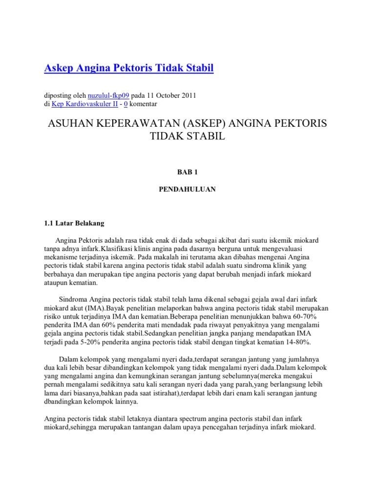 B dengan kasus miokard infark akut inferior di ruangan icu rsud dr. Infark miokard akut adalah nekrosisi miokard akibat aliran darah ke otot jantung targanggu. Infark miokard akut ima adalah suatu penyakit yang disebabkan oleh penurunan aliran darah melalui satu atau lebih arteri koroner mengakibatkan iskemia miokard dan nekrosis doengoes m e 2000.