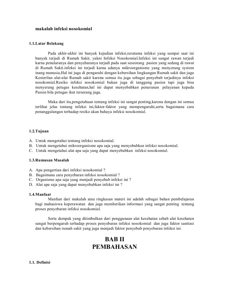 Makalah infeksi nosokomial pdf. Didapatkan insiden infeksi nosokomial 17 24 sedangkan di rsud dr sutomo prevalensi terjadinya infeksi nosokomial sebesar 9 85 1 12 2 2 pembagian infeksi nosokomial. Sekitar 80 infeksi saluran kemih ini berhubungan dengan pemasangan kateter. Infeksi ini menyebabkan 1 4 juta kematian setiap hari di seluruh dunia.