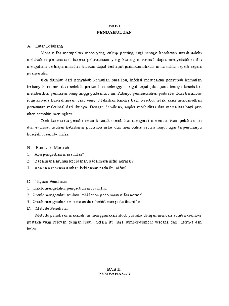 Perawatan masa nifas yang benar akan mengurangi adanya infeksi puerperium yang juga merupakan penyebab kematian tertinggi pada ibu maka dari itu pemeriksaan postnatal perlu sekali dilakukan untuk memastikan keadaan ibu dan bayi secara berkala serta untuk mengetahui secara dini apabila ada penyimpangan atau kelainan yang ditemukan. Masa nifas puerperium adalah masa sesudah persalinan yang dimulai setelah plasenta lahir dan berakhir ketika alat alat kandungan kembali seperti keadaan sebelum hamil yang berlangusng kira kira 6 minggu. Askeb makalah managemen asuhan kebidanan pada persalinan normal ibu hamil fisiologis ibu nifas normal bayi baru lahir normal patologis ibu hamil normal kb keluarga berencana ibu bersalin normal infertilitas majemen kebidanan adalah anc inc pnc 1 kehamilan 3 neonatus dan balita retensio plasenta hiperemesis gravidarum antenatal care postnatal care intranatal care imunisasi.