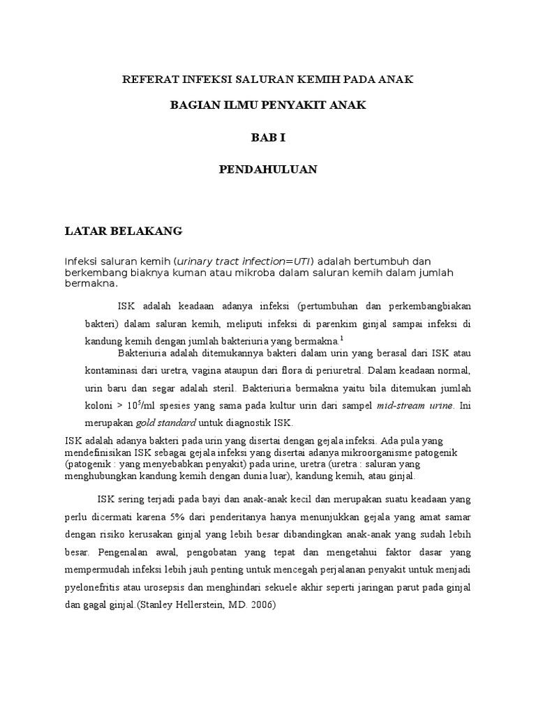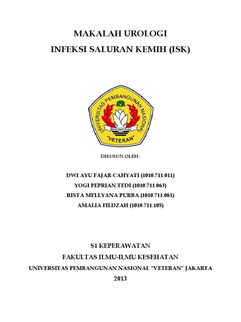 Makalah infeksi saluran kemih. Pada perempuan terdapat dua jenis isk bawah pada perempuan yaitu sistitis dan sindrom uretra akut. Infeksi saluran kemih adalah infeksi yang terjadi sepanjang saluran kemih termasuk ginjal itu sendiri akibat proliferasi suatu mikroorganisme. Wanita lebih mungkin mendapatkan isk daripada pria karena wanita memiliki uretra lebih pendek daripada pria sehingga bakteri memiliki jarak yang lebih pendek untuk melakukan perjalanan mencapai kandung kemih.
