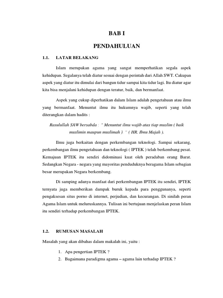 Bab i pendahuluan latar belakang peran islam dalam perkembangan iptek pada dasarnya ada 2 dua.